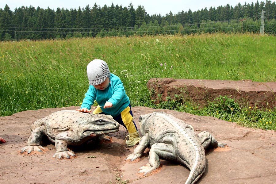 Toll, interessant, spannend, gigantisch, liebenswert .... sind nur einige Attribute, die wir von unseren Besuchern zum Thema Saurier-Erlebnispfad immer und immer wieder hören. Der Pfad ist inzwischen ein Publikumsmagnet und ein einmaliges Erlebnis, was weder in Thüringen noch in ganz Deutschland ein zweites Mal zu finden ist. Zwanzig Saurier, jeweils mit einer Informationstafel, begeistern auf der 4,5 km - Strecke von Georgenthal über die Saurierfundstätte "Bromacker" bis zur Lohmühle Kinder, Familien und Fachleute gleichermaßen.