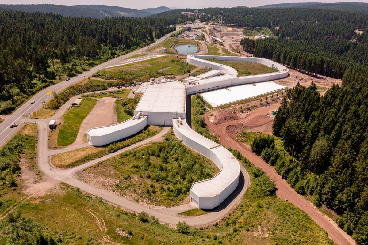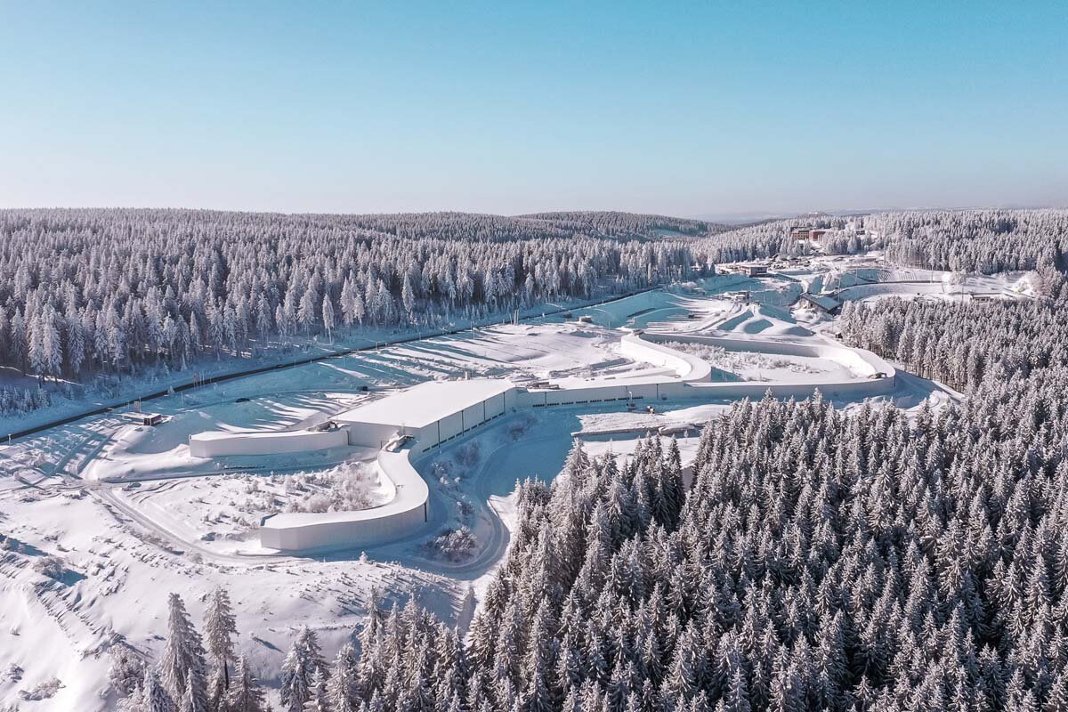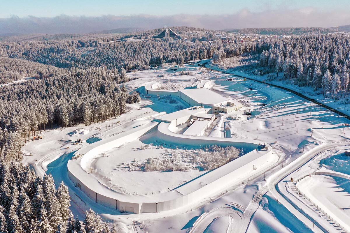 Besonderes: Rund 13 Monate wurde an der LOTTO Thüringen Skisport-HALLE in Oberhof gebaut. Über 2000 t Stahlbetonfertigteile wurden montiert, 12.500 qm Sockel-und Deckenelemente verlegt und über 11.000 qm Isolier-Wandpaneele angebracht. Vier Beschneiungsgeräte in der Schneehalle sorgen ganzjährig für ideale Schneebedingungen.