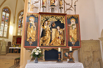 Ein wesentlicher Stifter für die neue Kirche war Dr. Kilian von Bibra, Domprobst in Würzburg. Nach seinem Tod im Jahr 1494 wurde sein Werk durch Lorenz von Bibra weitergeführt. Schon 1495 wurde dieser Lorenz zum Bischof von Würzburg gewählt. Er hatte dieses Amt bis zu seinem Tod im Jahr 1519 inne. Während seiner Amtszeit hatte er natürlich mit der Ausstattung von Kirchen zu tun. Es liegt nahe, dass er für die neue Kirche im Stammort seines Geschlechtes einen bekannten Künstler beauftragte.