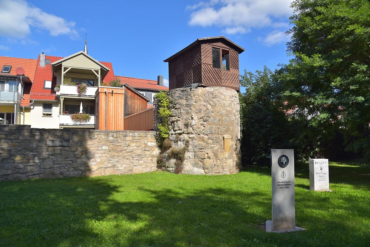 Reste der Stadtmauer und des vorgelagerten Wallgrabens sind nicht nur hier im Bereich des erst 1578 errichteten Gottesackertores, sondern noch an weiteren Stellen der Stadt anzutreffen. Das Gottesackertor entstand mit der Anlage des Friedhofes. Durch das unbesetzte Tor drangen im Dreißigjährigen Krieg die Schweden ein und verwüsteten die Stadt. Ständige Sanierungen - besonders ab 1994 - erhalten diese Relikte aus dem Mittelalter.