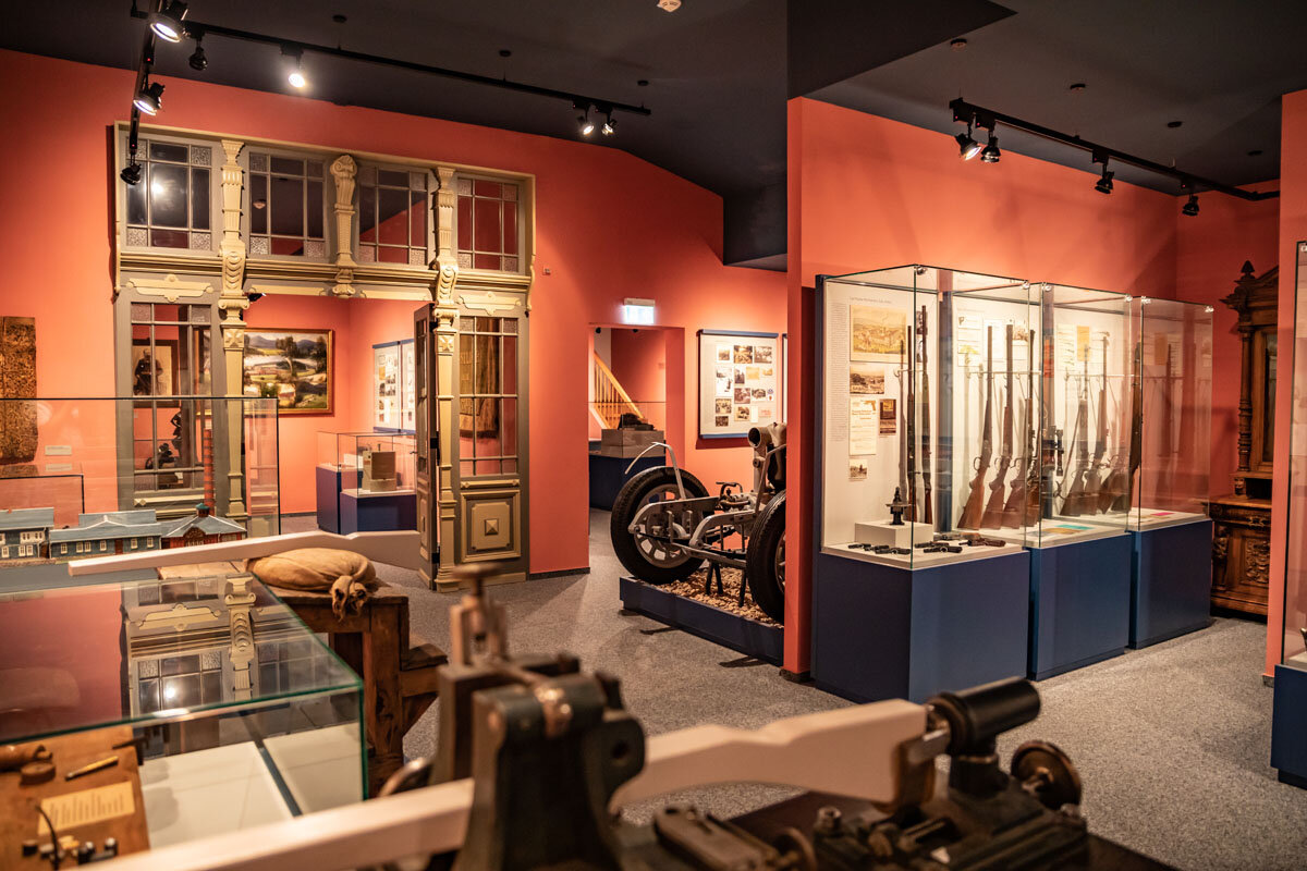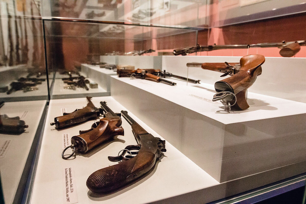 (die repräsentative Sammlung gibt eine Vorstellung von der einstmals blühenden Waffenindustrie unserer Stadt – Firmen wie Carl Walther oder J. G. Anschütz trugen den Namen der Waffenstadt in die Welt)