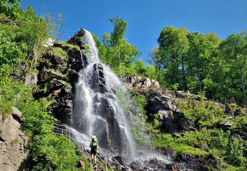 Inspiriert von der imposanten Felskulisse aus Granit und Pophyr im engen Kerbtal der Truse, entstand 1865 der wildromantische Wasserfall - ein Naturdenkmal.