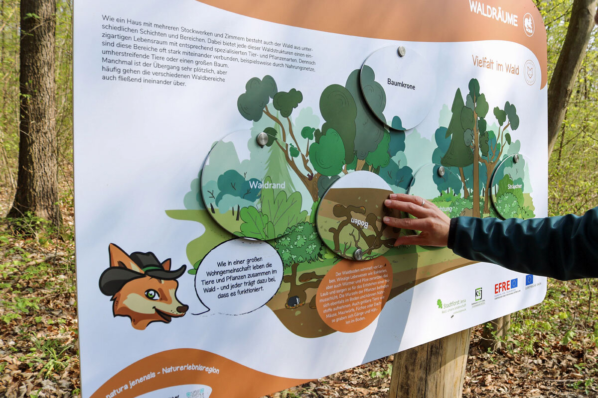 Außerdem erfahrt ihr, wie der Wald das Klima beeinflusst und warum totes Holz so wichtig ist. Aber nicht nur real zum Anfassen, sondern auch digital auf eurem Handy, könnt ihr Jenas Natur jetzt auf einzigartige Weise erleben. Die App natura jenensis ist die perfekte Ergänzung auf eurer Wanderung. Per Audioguide führt euch der Schlaue Ux von Station zu Station und erzählt euch tolle Geschichten aus dem Wald. Außerdem zeigt euch die App Naturschätze, die sonst im Verborgenen liegen.