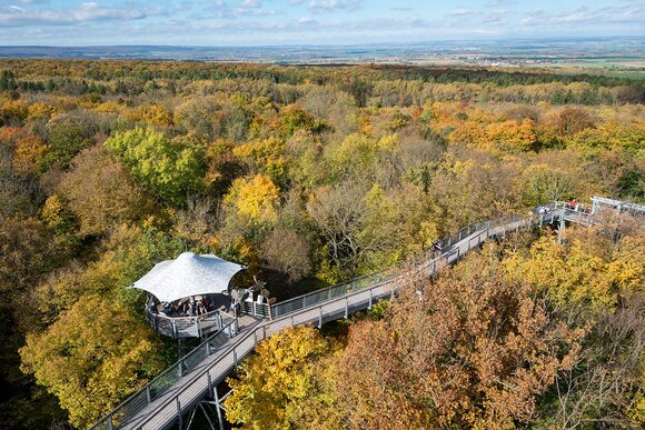 Wer in Thüringen hoch hinaus möchte, der sollte auf jeden Fall einen Abstecher zum Baumkronenpfad im Nationalpark Hainich machen. Dieser schlängelt sich auf einer Höhe von ungefähr 25 Metern durch die Baumwipfel des Nationalparks Hainich und bietet einen tollen Ausblick über die Umgebung. Der Rundgang von etwa einem halben Kilometer lohnt sich auf jeden Fall und bietet unterschiedliche Aussichtspunkte über das Thüringer Becken.