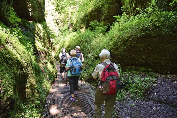 Ein weiteres Highlight des Thüringer Waldes ist die bekannte Drachenschlucht. Diese zieht sich mit einer Länge von etwa drei Kilometern durch das Gebirge und ist an manchen Stellen nur rund 70 Zentimeter breit. Die Wanderung durch die Schlucht lässt Jung und Alt staunen und sollte bei einem Kurzurlaub mit Kindern auf jeden Fall mit auf der Liste stehen. Geformt hat sich die Schlucht durch die Abtragung von Material durch den Wasserfluss in der Umgebung. Dieser Prozess findet bereits seit vielen Millionen Jahren statt. Die steilen Abhänge und Wände sind mit Moos und anderweitigen Pflanzen überwachsen und haben so ein neues Zuhause gefunden.