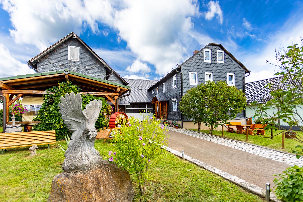 Mehr InformationenErholung pur in einer der schönsten Gegenden Thüringens. Unser Ferienhof mit einem Familienzimmer und zwei Ferienwohnungen befindet sich landschaftlich sehr reizvoll im Naturpark Thüringer Schiefergebirge - Obere Saale. Wir bieten: Kanuverleih, Kutschfahrten, geführte Motorradtouren, Reiten für Kinder sowie eine Grillhütte, die einen wunderbaren Blick über den Thüringer Wald bietet (ca. 500 m vom Hof entfernt).