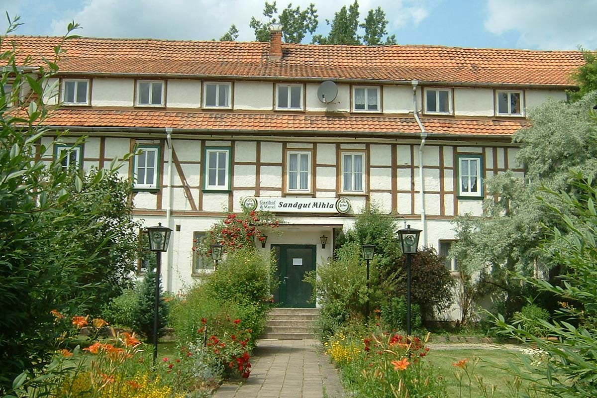 Mehr InformationenDirekt an der Werra, am Rande des Nationalparks Hainich, befindet sich das Sandgut Mihla. Hier können Sie aufgrund der ruhigen Lage unserer Gästezimmer erholsam übernachten. Unser Haus liegt unmittelbar am Werratalradweg! Genießen Sie in unserer Gaststätte Thüringer Spezialitäten. Schlachtbuffet und Mastlamm gibt es auf Vorbestellung. Unsere Räumlichkeiten (bis 70 Plätze) eignen sich für Feierlichkeiten und Veranstaltungen. Gern organisieren wir für Sie: Reittouristik und Kremserfahrten, Wanderungen im Hainich.