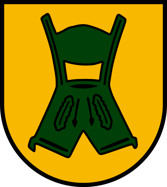 Das Wappen wurde weit nach 1287, nachdem das Kleidungsstück bekannt wurde, angefertigt. Durch die Anpassung des Ortsnamens, an die herkömmlichen Bedeutung, entstand eine Lederhose auf dem Wappen. Diese ist allerdings nicht im typischen Lederbraun, sondern in der Ortsfarbe Grün dargestellt.