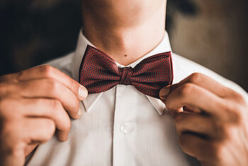 Wichtiges Accessoire der Herren war die Fliege, die als Zeichen eines gebildeten und stilbewussten Mannes galt. Damals wie heute ist es wichtig, sie richtig zu binden, damit sie gut sitzt. Und keine Sorge, ein wenig Asymmetrie ist kein Zeichen für eine schlecht gebundene Fliege, sondern zeigt nur, dass sie selbst gebunden wurde und es sich nicht um eine fertige Ansteckfliege handelt.