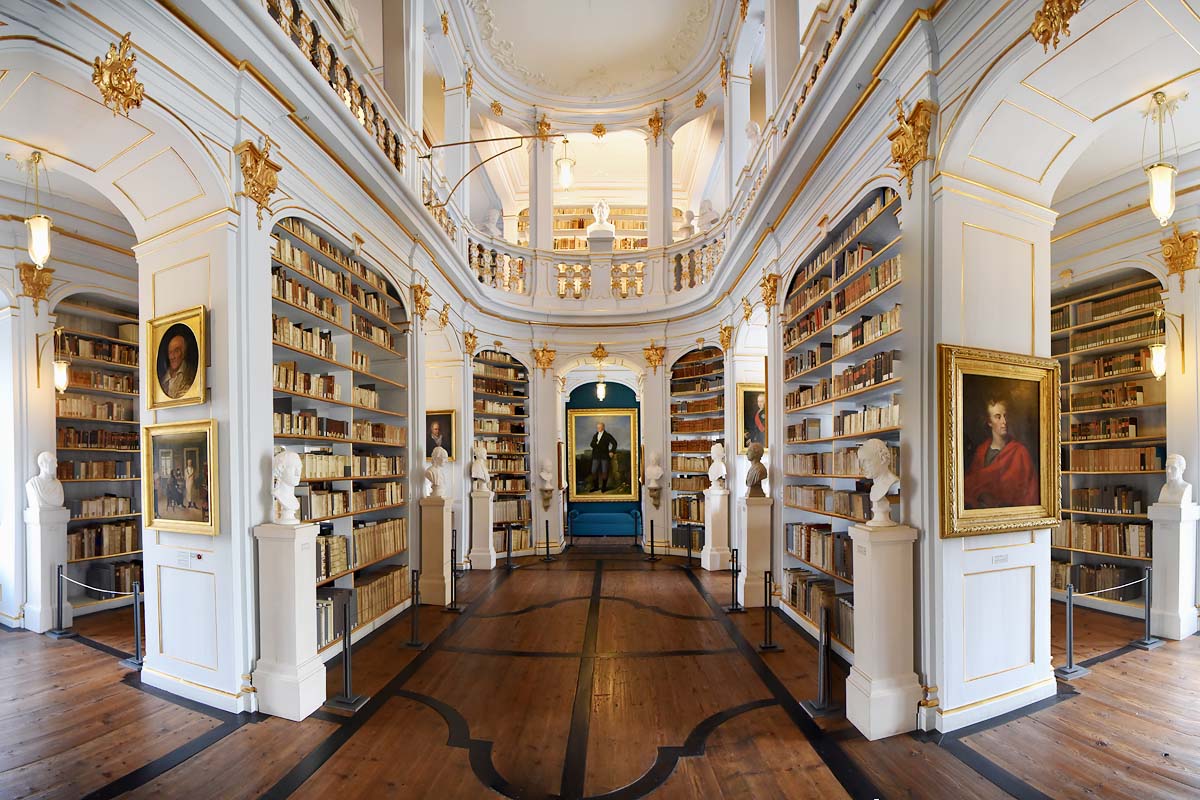Die historische Bibliothek mit ihrem ovalen und über drei Geschosse reichenden Rokokosaal ist weltweit bekannt. Die angeschlossene Forschungsbibliothek für Literatur- und Kulturgeschichte umfasst bedeutende Werke von der Aufklärung bis zur Spätromantik.