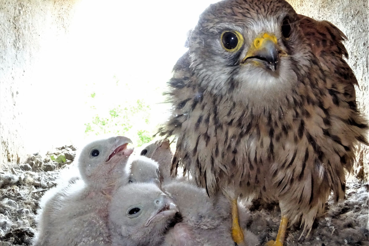Mehr InformationenJedes Jahr findet mit Hilfe einer Kamera eine Liveübertragung der Brut und Aufzucht von Turmfalken, welche sich in einem Teil des Schlosses befinden, statt. Vom Legen der Eier bis zum „flügge“ werden der Jungtiere. Dieses wird auch aufgezeichnet und ganzjährig (außer dem Brutzeitraum) abgespielt. Bedeutet, Falkenbeobachtung das ganze Jahr über.
