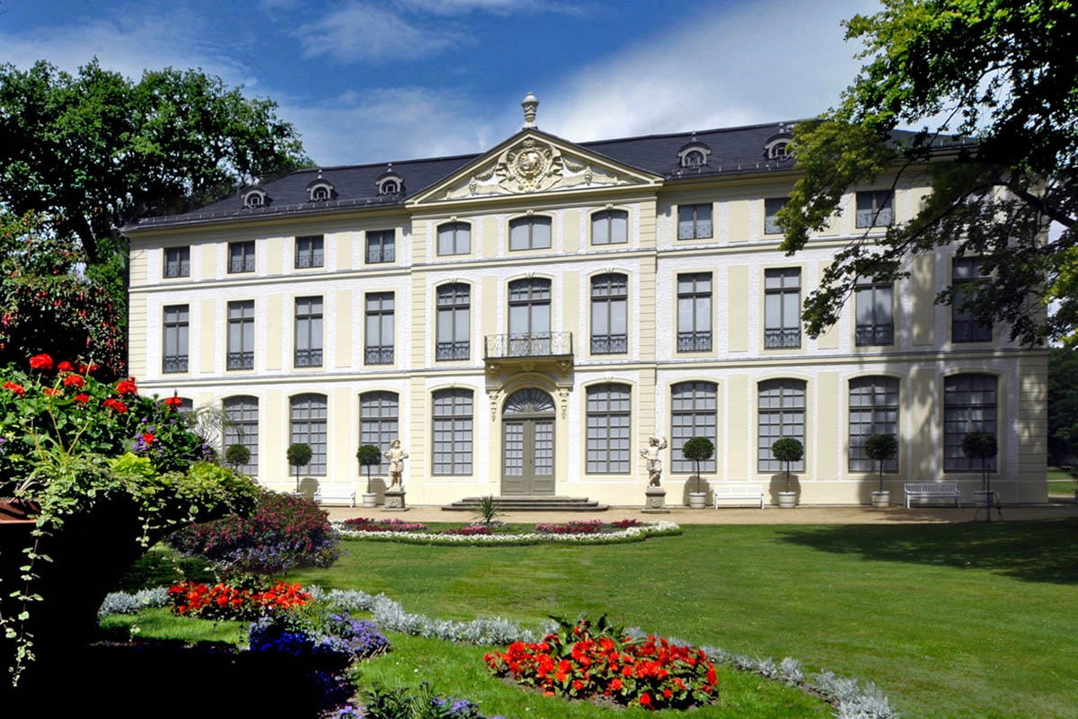 Die spätbarocke Orangerie besitzt Sammlungen sakraler Kunst, des Mittelalters, zum Bauhaus, bedeutende Sammlungsteile Ostthüringer Kunst sowie die Grafik und Gegenwartskunst.