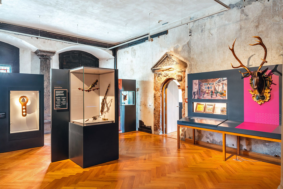 Mehr InformationenStadt-, Regional- und Technikgeschichte (Waffen, Waffenbeschuss, Autos, Fahrräder, Büromaschinen) sowie Volkskunde, rollstuhlgerechte Einrichtung.