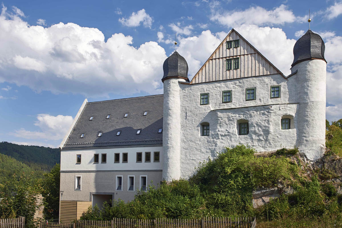 Inmitten grün bewaldeter Hügel thront das Schwarzburger Schloss in Thüringen majestätisch über dem Schwarzatal und lädt ein, die historische Schlossanlage, den Kaisersaal und die Schätze des Fürstlichen Zeughaus Schwarzburg zu entdecken. Nicht nur die ereignisreiche Geschichte des Thüringer Schlosses, der Fürsten von Schwarzburg und die umfangreiche Waffensammlung von über 5.000 Objekten im historischen Zeughaus, sondern auch die malerische Landschaft machen das Schwarzburger Schloss zu jeder Jahreszeit zu einem interessanten Ausflugsziel.