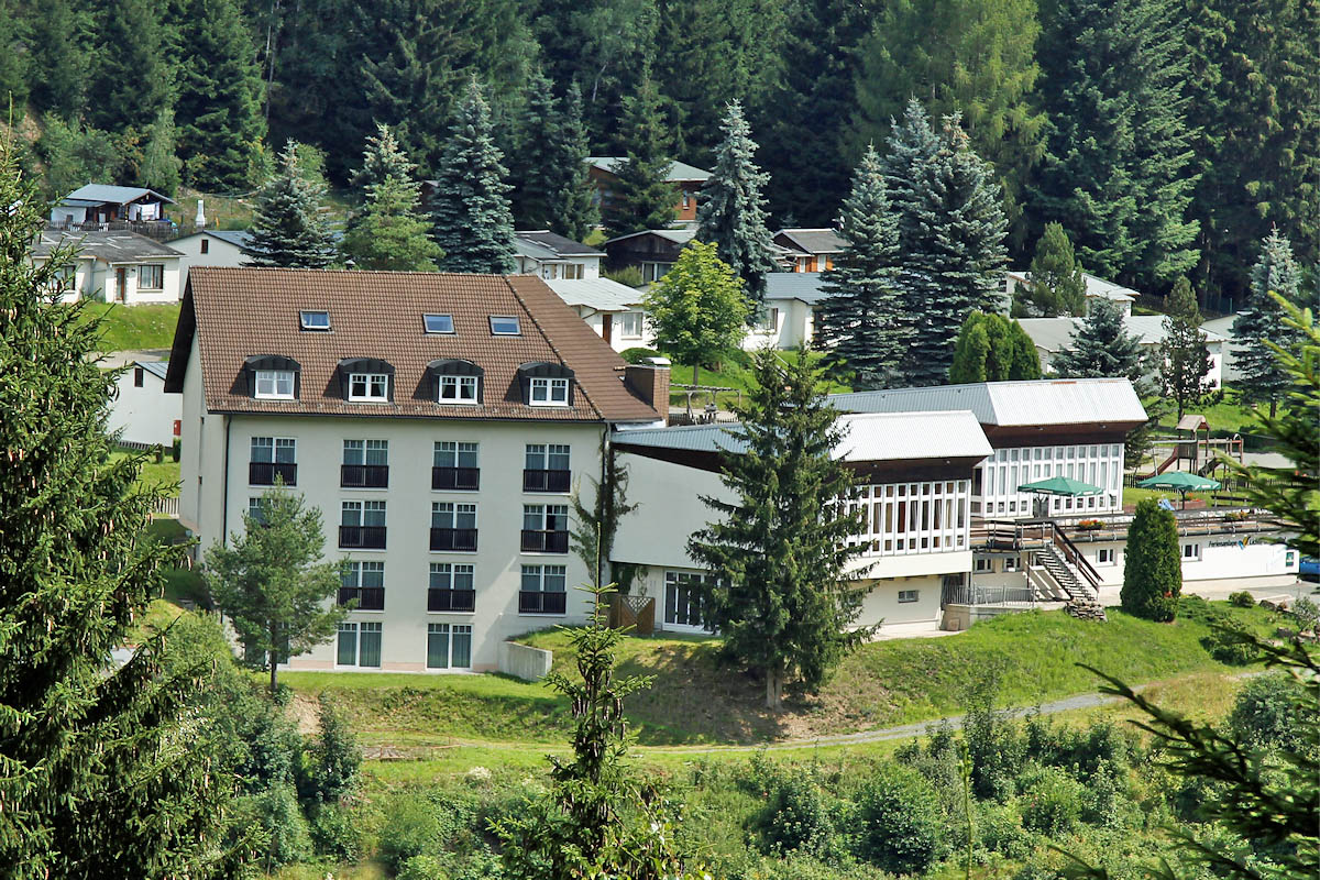 Das romantische Hotel (Baujahr: 1876) liegt mitten im Schwarzatal / Thüringer Wald.