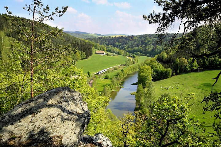 Die Bergaer Burg – bereits frühzeitig als Ritterburg genutzt - erhebt sich nördlich der Stadt auf einem Bergsporn und ist derart von der Bewaldung umschlossen, dass sie darin nahezu verschwindet. Leider fiel das „Bergaer Schloss“ 1994 einem verheerenden Brand zum Opfer.