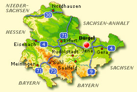 Die Thüringer Kleinstadt Bürgel liegt im Herzen des Saalelandes, am Rande des waldreichen Holzlandes und in unmittelbarer Nachbarschaft zur Zeiss- und Universitätsstadt Jena.