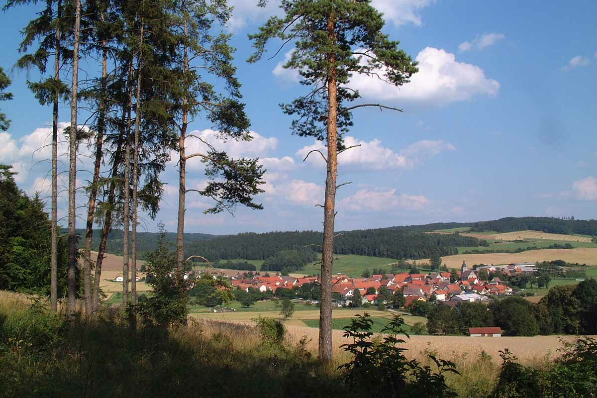 Die Gemeinde Exdorf mit Ortsteil Obendorf liegt im Westen der Verwaltungsgemeinschaft, im sanften Tal der "Jüchse", die am westlichen Ortsrand vorbeifließt. Erstmalig erwähnt wird der Ort 951 als "Heigesdorf", als ein fränkischer Adliger namens Fricco der Reichsabtei Fulda Güter in "Heigesdorf" schenkte.