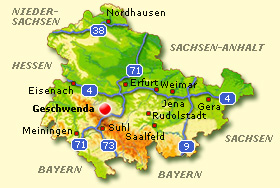 Der Ferienort Geschwenda ist reizvoll gelegen, inmitten von Wald und Bergen bietet er alllen Gästen das ganze Jahr über Ruhe und Erholung.