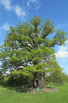 Neben der sogenannten 1000-jährigen Eiche gibt es viel Wald und eine sehenswerte Teichlandschaft. Der Wald lässt sich besonders durch den