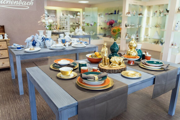 Unser Werksverkauf ist nur 2 Minuten vom Autobahnkreuz „Hermsdorf „ Knotenpunkt A4 und A9 entfernt. Hier können Sie die gesamte Angebotspalette an edlem Porzellan in Augenschein nehmen.