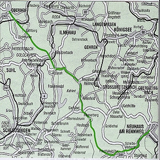 Neuhaus am Rennweg - Limbach - Friedrichshöhe - Masserberg - Neustadt am Rennsteig - Bahnhof Rennsteig b. Schmiedefeld - Schmücke - Oberhof