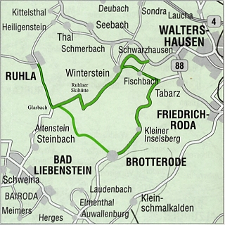 Ruhla - Glasbach - Brotterode - Kleiner Inselsberg - Tabarz - Fischbach - Winterstein - Ruhlaer Skihütte - Ruhla
