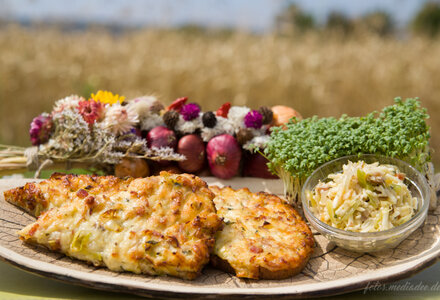 Das Weimarer Zwiebelbrot ist eine gelungene Komplettierung für den kleinen Appetit und passt sowohl zum frisch gezapftem Bier als auch zum Schoppen Wein.