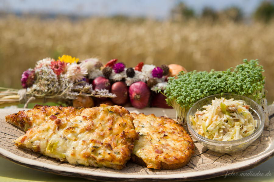 Dazu passt ein gut gewürzter Kräuterschmand oder Creme Fraiche. Das Weimarer Zwiebelbrot ist eine gelungene Komplettierung für den kleinen Appetit und passt sowohl sehr gut zum frisch gezapftem Bier als auch zum Schoppen Wein.
