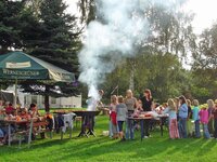 Urlaub im OT Mengersgereuth-Hämmern, im historischen Gewand, im Charakter des Hauses eingerichtete Gästezimmer, Gaststube und Saal mit Thüringer Küche und hausgeschlachteter Wurst; kleiner Bauernhof am Haus; zentraler Ausgangspunkt für Wanderungen, Radtouren u.v.m.