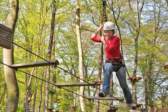 Kraft und Geschick ist die Grundvoraussetzung, um einen Parcour im Hochseilgarten zu bewältigen. Gemeinsames Klettern ist ausgesprochen gruppenorientiert, denn die Aufgaben in Hochseilgarten lassen sich nur durch die gezielte Zusammenarbeit lösen. Intelligenz und Kraft von unterschiedlichen Personen müssen zusammengebracht werden, um die Aufgaben zu bewältigen. In Thüringen gibt es mehrere Klettergärten. Dazu gehören zum Beispiel der Kletterwald Tabarz, der Hochseilgarten Steinach und das Rennsteig-Outdoor-Center.