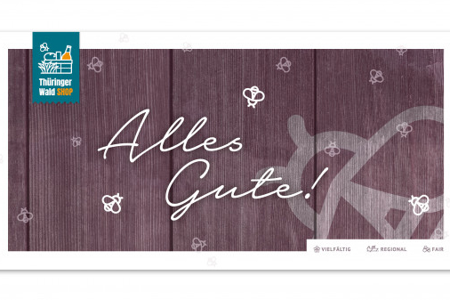 Sie möchten einem lieben Menschen "Alles Gute" wünschen? Sagen Sie es doch einfach mit diesem Geschenkgutschein! Sie können den Betrag des Gutscheins selbst festlegen und der Beschenkte hat dann die Möglichkeit, aus dem gesamten Sortiment des Thüringer Wald Shops frei auszuwählen. Sie erhalten den gedruckten Gutschein per Post, der Versand ist kostenfrei.