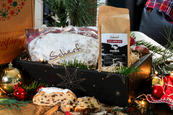 Diese Geschenkbox beinhaltet einen 600 gr Thüringer Stollen, dessen saftiger Geschmack und aromatische Füllung ein Highlight der Adventszeit sind, mit einer 250g Packung feinsten Denkmahl-Kaffees.