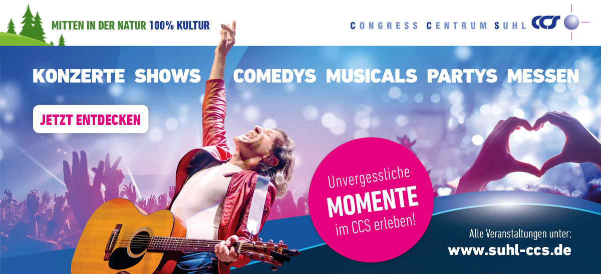 Das Congress Centrum Suhl zählt zu den attraktivsten und modernsten Veranstaltungs- und Erlebniszentren in der Mitte Deutschlands. Es bietet ideale Bedingungen für erfolgreiche Konzerte, Messen, Kongresse u. Events aller Art.