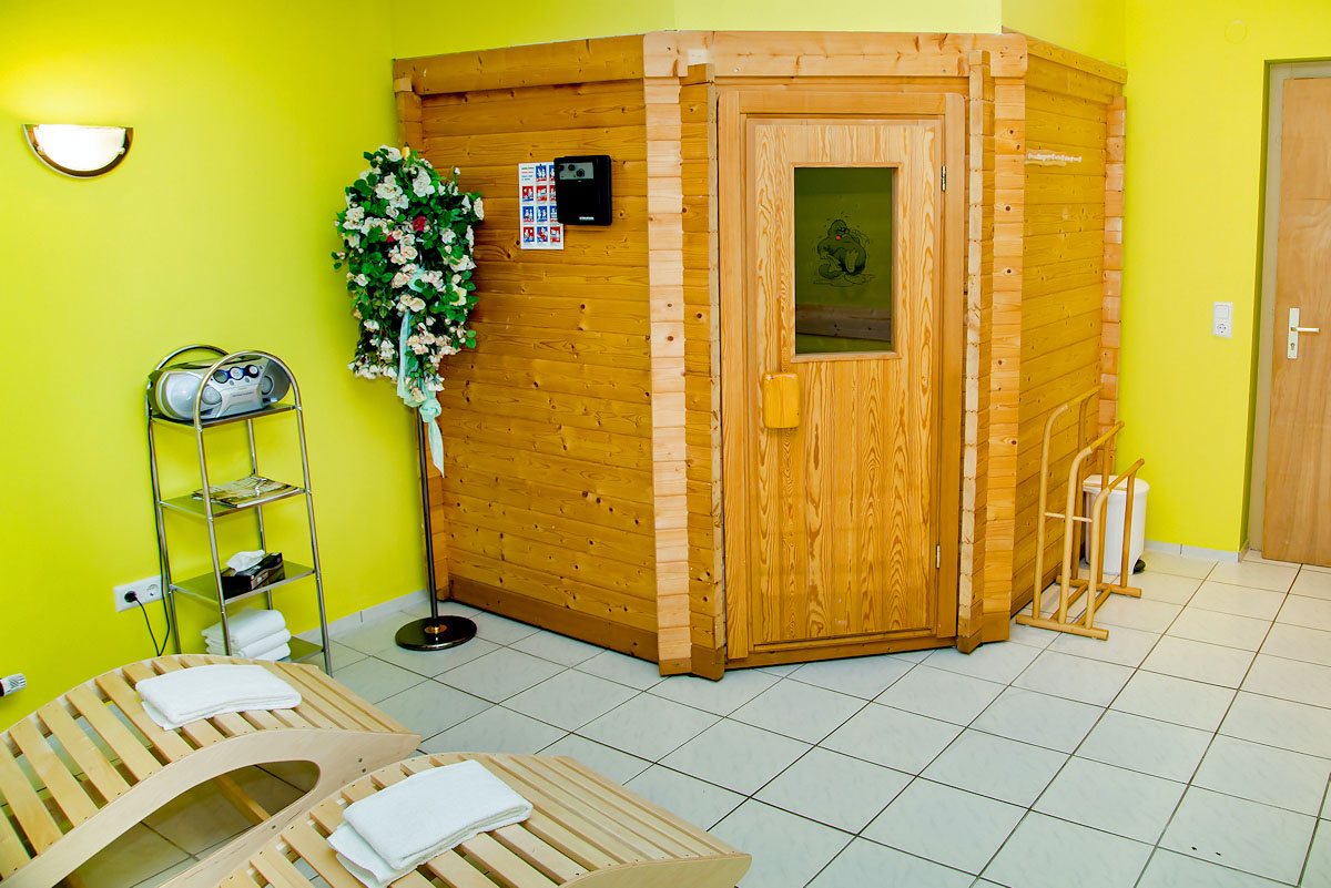 Saunabenutzung: 6,00 EUR pro Person oder 12,00 EUR pro Person inklusive Bademantel & Mineralwasser