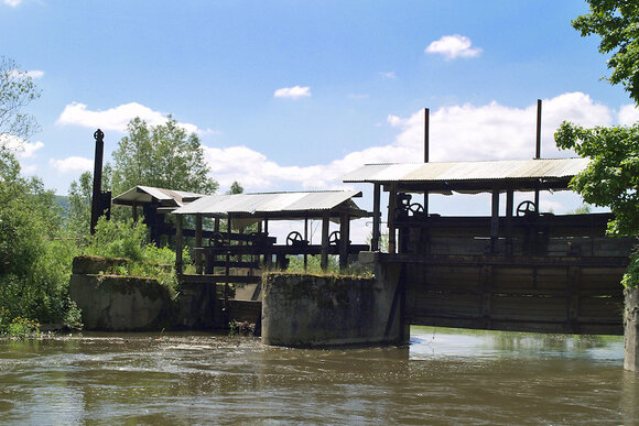Doch vergessen Sie dabei nicht, die Wasserkraftanlage Dorndorf zu umtragen. Das geht am besten, wenn Sie rechts in den Mühlkanal einfahren und die Ausstiegsstelle (li) vor dem Einlassbauwerk benutzen.
